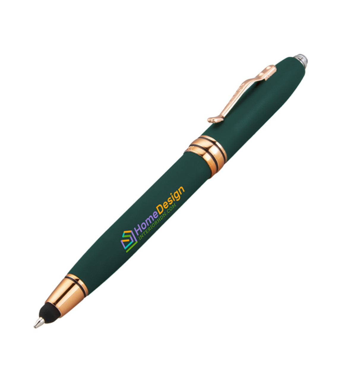 The Royale Tech Soft Touch Triple Function Copper Pen makes an excellent appreciation gift or handout at business events. Customers will love the way it looks and feels, and prospects will certainly admire it too. We’ll add your imprint in full-color on the smooth, soft-touch barrel so they never forget the brand behind this attractive giveaway. Quality metal construction Rubber stylus at the tip Push-activated light at the back end Attractive copper accents Twist-action retractable ballpoint Metal pocket clip Uses 3 button cell batteries (included with battery blocker, and replaceable) Full color digital decoration Item size: 5.31″ H Imprint area: Barrel Front/Back: 1.625″ W x 0.25″ H (full color) Cap Front/Back: 1.125″ W x 0.25″ H (full color) Imprint: Barrel Front/Back: 2 lines / 30 characters per line Cap Front/Back: 2 lines / 18 characters per line Imprint charges: $30.95 set up charge