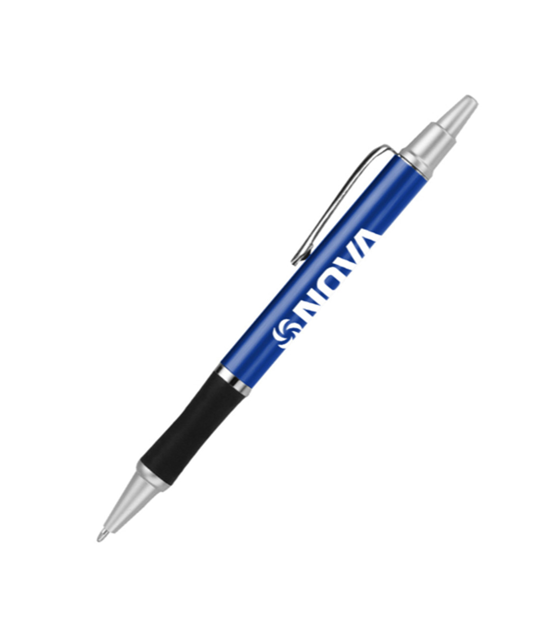 A contoured barrel and black rubber grip help the Sleeker Chrome promotional pen glide across the page and look great doing it! With its hourglass shape and retractable ballpoint tip, this custom pen is an appealing giveaway for trade shows and other business events. Durable plastic construction Click-action retractable Chrome carrying clip and trim Rubber comfort grip Medium ballpoint tip Screen-printed decoration Item size: 5.37″ H Imprint area:Barrel: 1.75″ W x 0.625″ H (2 colors max.) Imprint: Barrel: 4 lines / 28 characters per line Imprint charges: $24.95 set up charge $0.10 per pc per additional color