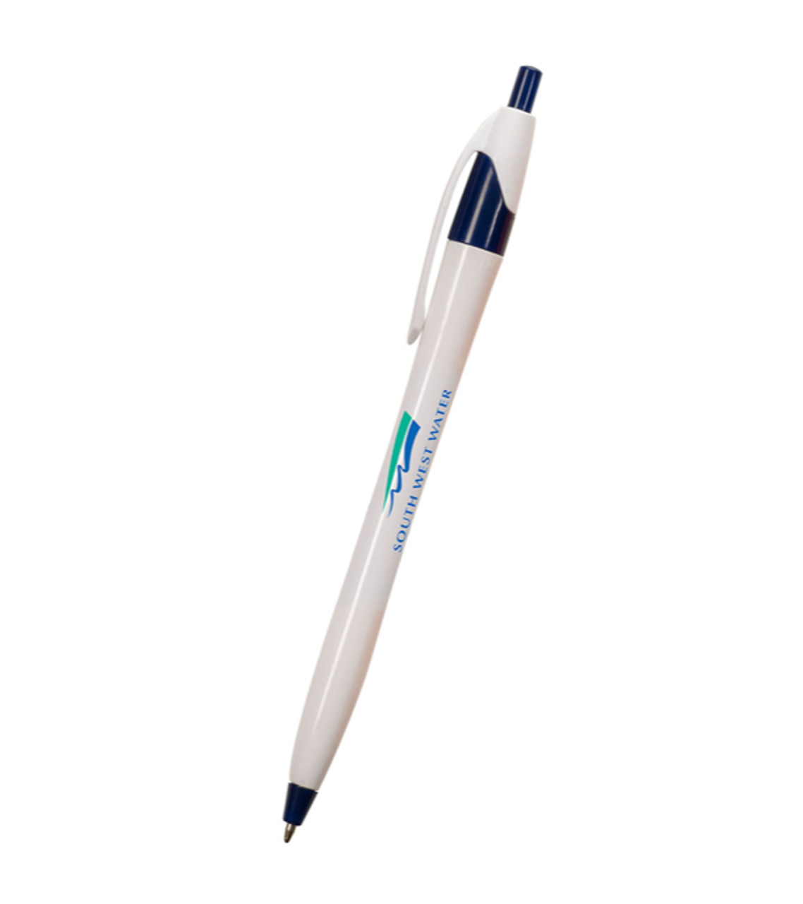 The Slimster Pen will make sure your business is seen and appreciated regularly. When they reach for this simple click pen at home, at the office or on-the-go, they will be grateful for the brand that gave it to them. Hand this out at any trade show, fair or community event to leave an impact on your audience. Click-action retractable ballpoint Colored trim in black, blue, red or green Convenient carrying clip Plastic Full-color digital decoration Item size: 5.75″ H Imprint area: Wraparound: 4″ W x 0.25″ H (full color) Imprint: Wraparound: 1 line / 28 characters per line Applicable charges: $30.00 set up charge