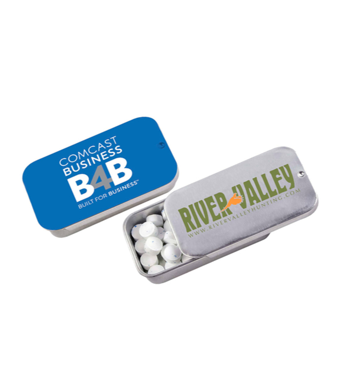 With its compact size, this reusable tin of mints fits into pockets or purses so it’s always on hand. The sliding lid makes sharing effortless, and your full color imprint ensures that people will take notice of your brand everywhere. The perfect giveaway to get out the vote or for other event driven campaigns. Reusable tin Filled with 0.30 oz. MicroMints® Non-melt product Made in USA Full color digital decoration Item size: 1.125″ W x 2.125″ H x 0.375″ D Imprint area: Top: 1.75″ W x 0.875″ H (full color) Imprint: Top: 4 lines / 14 characters per line Applicable charges: $60.00 set up charge