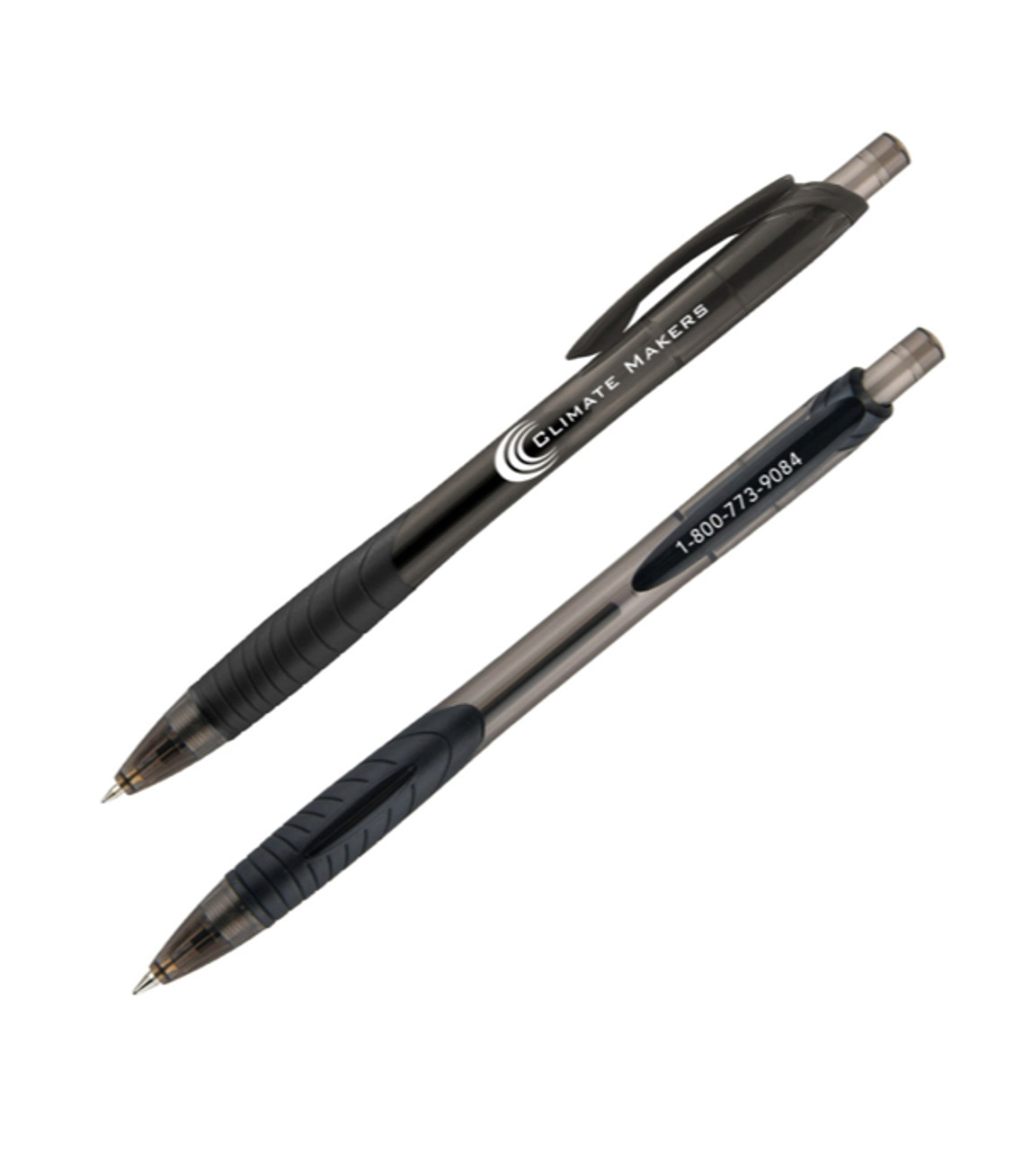 The lined grip and contoured barrel of the Southlake promotional pen create a flowing shape that’s comfortable to hold. Your choice of translucent color and customized message are guaranteed to attract attention. This giveaway will be a hit at any trade show or convention. Plastic Click-action retractable medium ballpoint Colored comfort grip with matching clip Features smooth and smear-free quality RiteFlow ink in black or blue. Optional clip imprint available. Screen-printed decoration Item size: 5.78″ L x 0.43″ W x 0.57″ D Imprint area: Barrel: 1.75″ W x 0.625″ H (1 color max.) / Clip: 0.75″ W x 0.12″ H (1 color max.) Imprint: Barrel: 3 lines / 28 characters per line Clip: 1 line / 14 characters per line Imprint charges: $24.95 set up charge