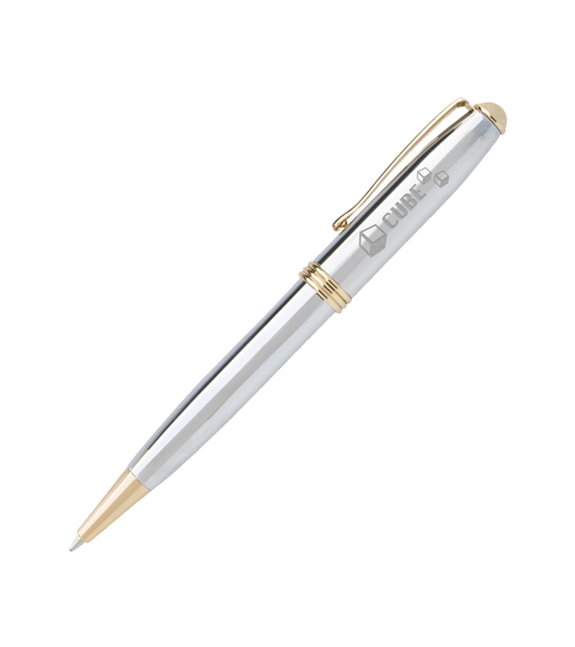 The Souvenir® Worthington® Chrome Ballpoint Pen is a top-quality gift that will make anyone feel valued. It’s made of brass for durability with a smooth-writing ballpoint tip and a stunning chrome finish. Whenever you present this pen, you’ll leave a lasting impression for your brand. Brass barrel Twist-action Elegant chrome finish with 22K gold-plated accents Tungsten carbide ball Black velour sleeve included Optional stock cap slogans available Laser-engraved for a permanent impression Item size: 5.15″ H x 0.5938″ Dia Imprint area: Pen Cap Front: 1.25″ W x 0.5″ H Imprint: Pen Cap Front: 2 lines / 12 characters per line Imprint charges: $60.00 set up charge
