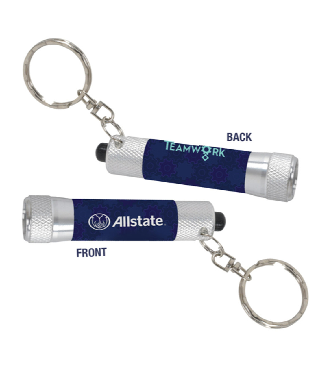 The Teamwork 3 LED flashlight key ring is a convenient business gift that shows your company’s values. It’s made with 3 LED bulbs to shine brightly in dim settings, a key ring attachment so it’s easy to carry anywhere, and a unique barrel design that celebrates the power of teamwork. Add your custom imprint and make this unique gift your own. Lightweight aluminum design 3 LED bulbs Split key ring attachment On/Off button Laser engraved for a permanent impression Item size: 2 3/5″ H Imprint area: Front: 1 1/4″ W x 1/4″ H (1 color max.) Imprint: Front: 3 lines / 24 characters per line Applicable charges: $24.95 set up charge