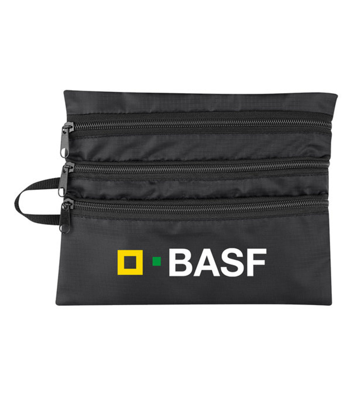 The Tech Accessory Travel Bag is designed with multiple zippered compartments for convenient, organized storage. Customers can use it to hold cords, power banks, earbuds and other tech accessories in a safe and convenient place day after day. Made of 210D ripstop polyester 3 Front zippered pockets 1 Large back zippered pocket Convenient Polyester side loop for easy hanging Spot clean/Air dry Heat-transferred decoration Item size: 9″ W x 7″ H Imprint area: Front: 6″ W x 1.5″ H (3 colors max.) Imprint: Front: 4 lines / 33 characters per line Applicable charges: $60.00 set up charge per color $0.50 per pc per additional color