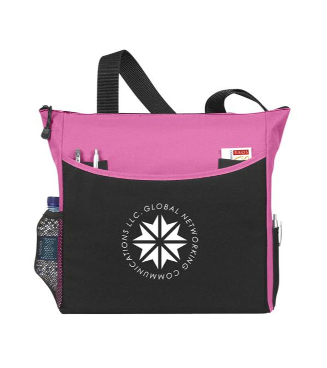 The Transport It Logo will keep customers and employees organized while on the go. It has a zippered main compartment with special exterior compartments for a cell phone, business cards, pens and more. This durable business gift everyone will love to carry around and show off. 600D Polyester Zippered main compartment Exterior slip pocket Side mesh pocket, perfect for water bottle Side cell phone pocket Pen and business card pockets Shoulder-length carrying handles (approx. 1.5″ W x 25″ L) Screen-printed decoration Item size: 13″ W x 14″ H x 4.5″ D Imprint area: 7″ W x 5″ H (1 color max.) Imprint: 6 lines / 24 characters per line Applicable charges: $60.00 set up charge
