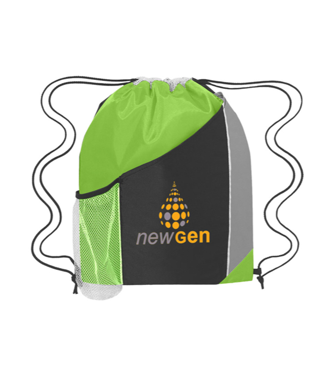 You’ll love the way your custom imprint looks on the Tri-Color Sports Pack. The trendy, colorful style will draw attention to your message while the roomy design and extra pockets keep customers satisfied. Hand out this drawstring bag at fairs, conventions, and company events to get an increase in brand awareness. Made of 210D polyester Large front pocket Side mesh pocket Drawstring closure Spot clean/Air dry Heat-transferred decoration Item size: 13″ W x 17.75″ H Imprint area: Front Pocket: 5″ W x 5″ H (4 colors max.) Imprint: Front Pocket: 10 lines / 22 characters per line Applicable charges: $60.00 set up charge per color $0.48 per additional color