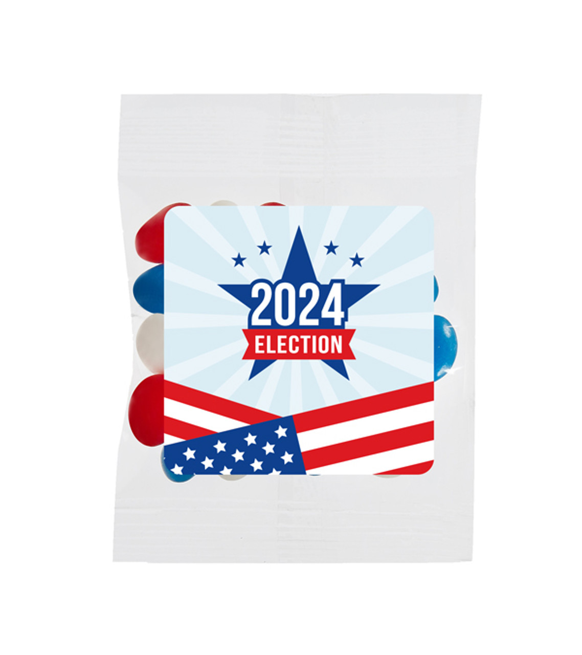 Tribute Treat Bag with Patriotic Jelly Belly® Jelly Beans – 1 oz. 1 oz. cello bag of red, white and blue Jelly Belly® Jelly Beans Flavors – Red Cherry, Blueberry, Coconut Full color digital decoration on label Item size: 3″ W x 4″ H Imprint area: Label: 1.875″ W x 1.875″ H (full color) Imprint: Label: 10 lines / 34 characters per line Applicable charges: $65.00 set up charge