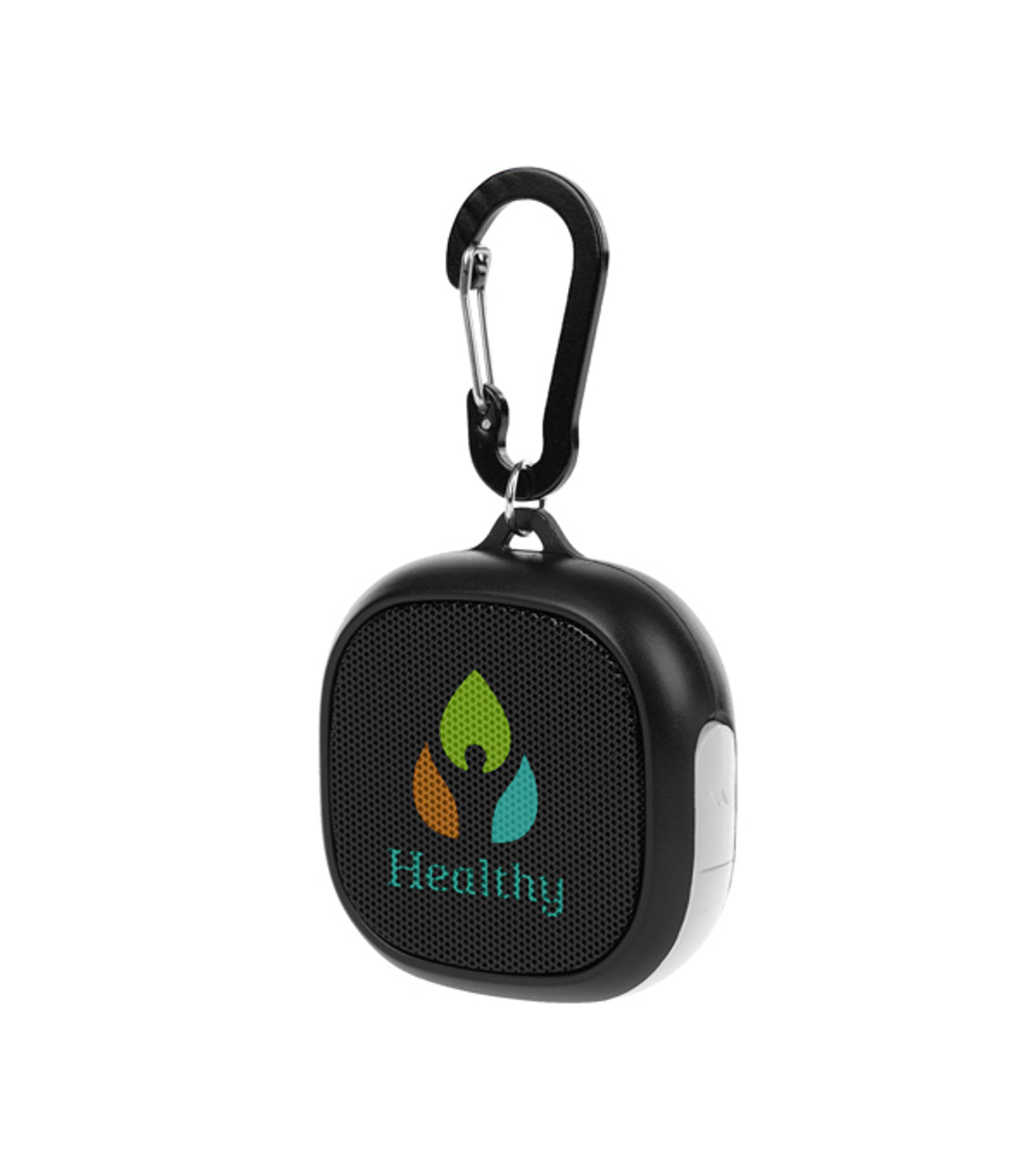 Gear up for the ultimate audio adventure with the Waterproof Speaker Carabiner. This rugged and portable speaker combines powerful sound with a waterproof design, allowing you to enjoy your favorite tunes even in the most challenging environments. Waterproof and shockproof construction for outdoor durability Powerful sound quality for an immersive audio experience Integrated carabiner for easy attachment to gear Compact and portable design for on-the-go entertainment 1800 mAh lithium polymer battery Features a Micro-USB input (cord included) Pairs from up to 30 feet away Up to 2 hours of play time Ideal for hiking, camping, beach trips, and more Full color digital decoration Item size: 2.75″ W x 2.75″ H x 0.75″ D Imprint area: Front / Back: 2″ W x 2″ H (full color) Imprint: Front / Back: 8 lines / 14 characters per line Applicable charges: $60.00 set up charge $0.30 per pc per additional location