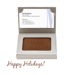 Silver Chocolate Business Card Box-Happy Holidays