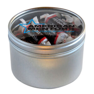 Tootsie Rolls in Large Round Window Tin