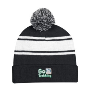 Two-Tone Knit Pom Beanie with Cuff – Embroidered