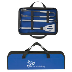 3 Piece Bamboo Utensil Set In Travel Pouch